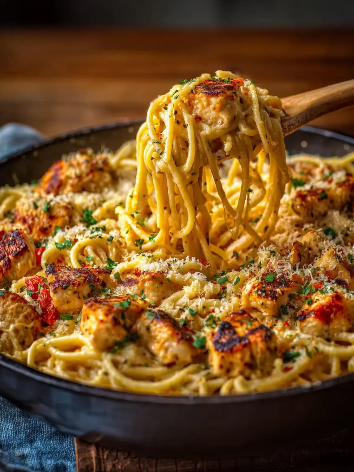Heavy cream and chicken broth: Together, they create the lush, velvety sauce that makes this dish stand out. It caresses the noodles and infuses every bite with creamy goodness.