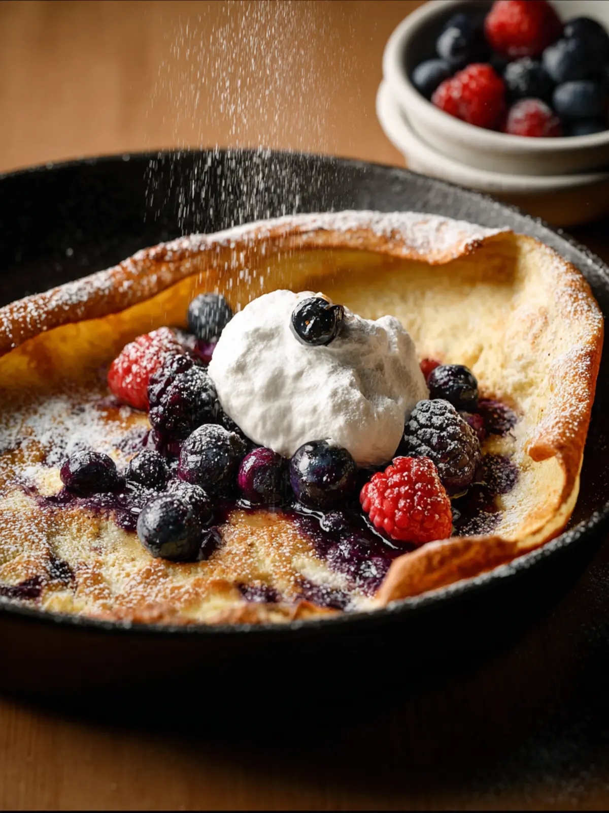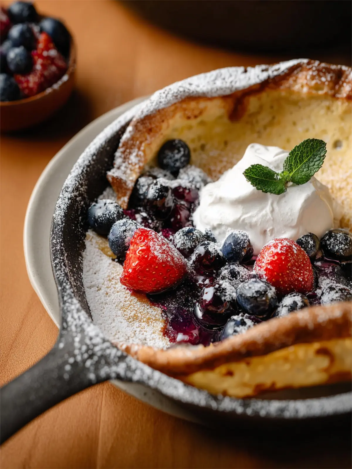 Fruit Toppings: While the classic lemon juice and powdered sugar combo is a winner, consider using seasonal fruits like fresh berries or sliced bananas. They add a lovely burst of flavor and a pop of color to your Dutch Baby.