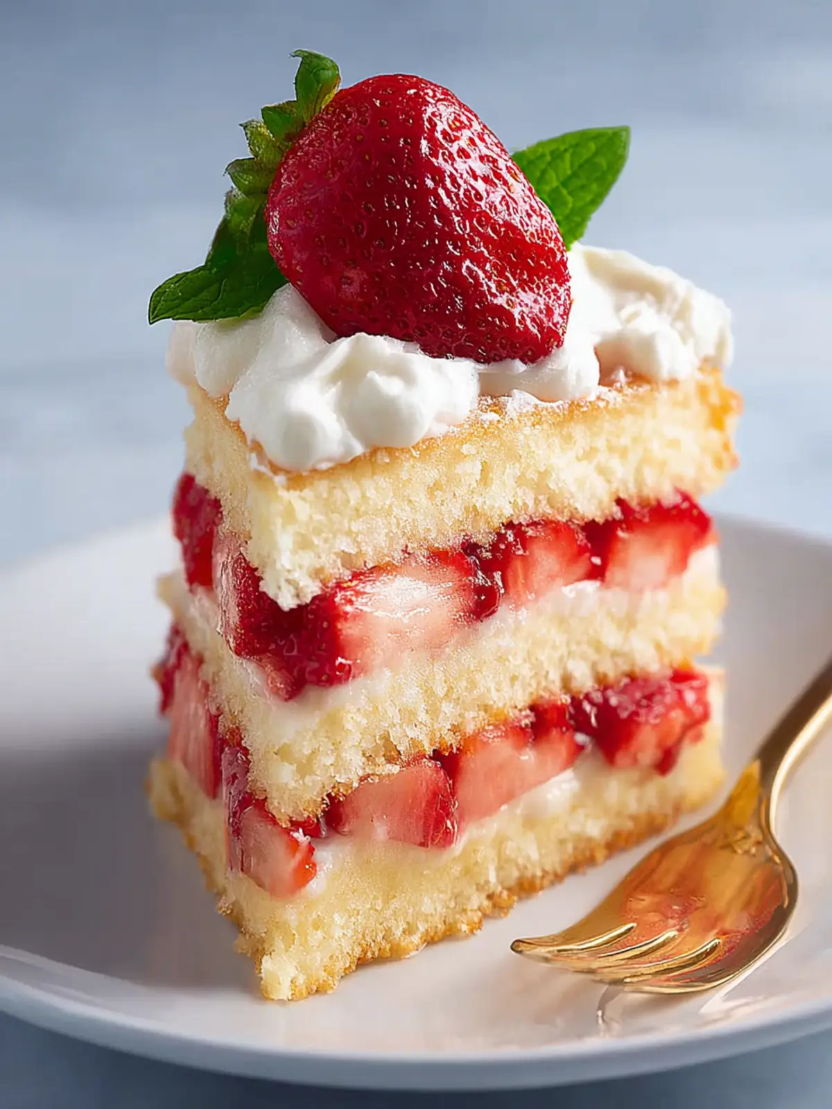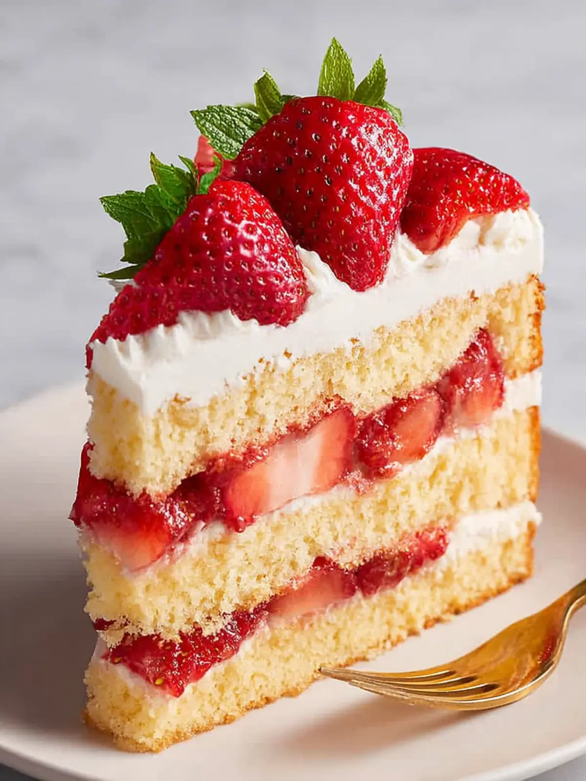 Strawberries: Fresh strawberries play a vital role in this dessert. Their natural sweetness shines through, making them the perfect complement to the gently sweet cake. Not only do they taste great, but they also add a vibrant color that elevates the presentation.