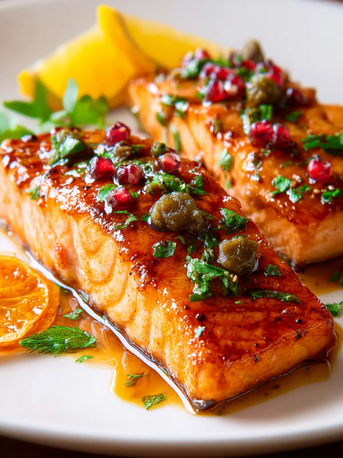 - Serve – Transfer the salmon to a serving plate and drizzle with extra sauce. Garnish with orange zest and fresh herbs if desired.