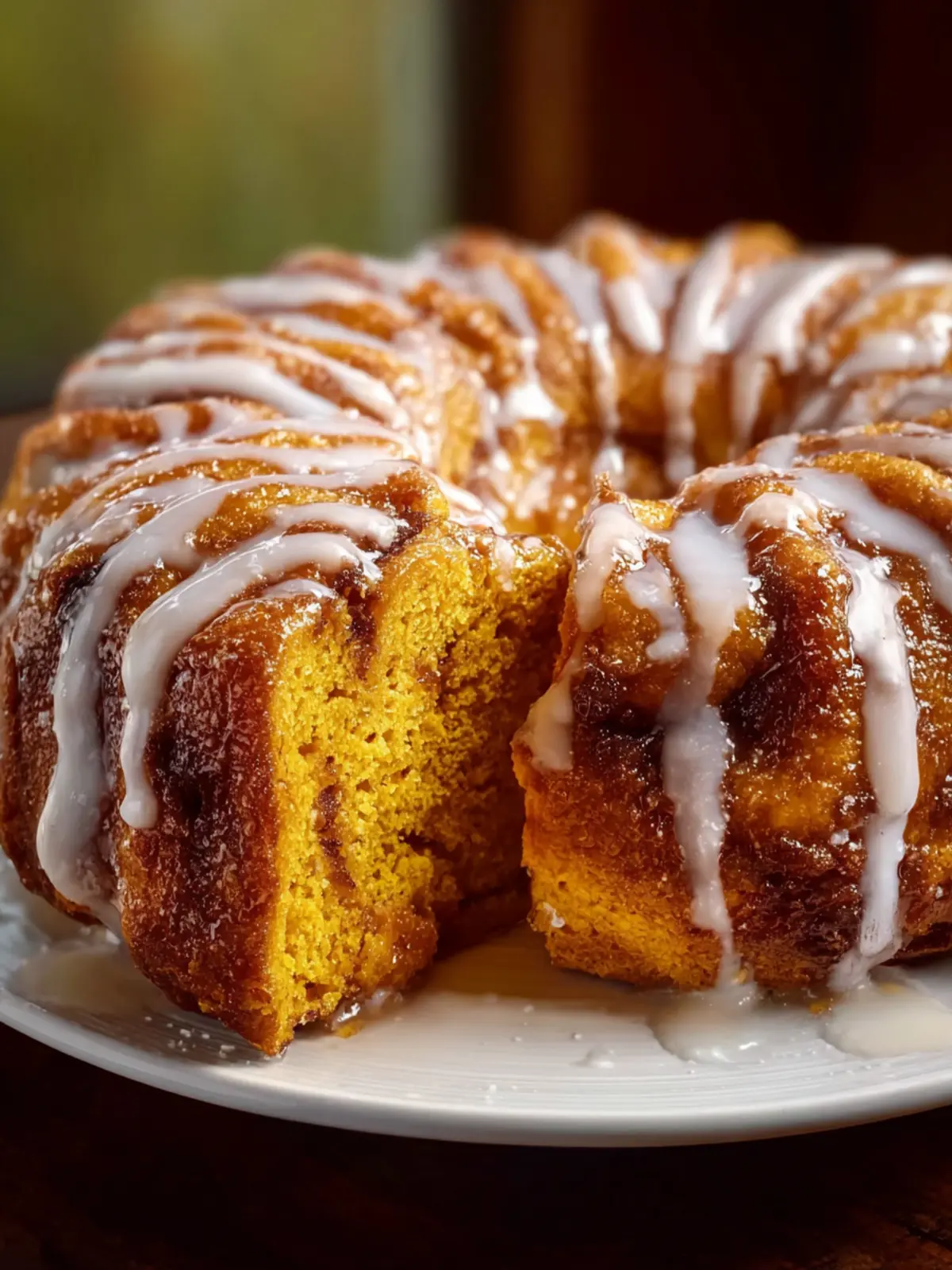 Versatile Serving: Whether you enjoy it for breakfast with a hot cup of coffee or as a dessert paired with vanilla ice cream, the Pumpkin Honey Bun Cake is versatile enough to suit any occasion.