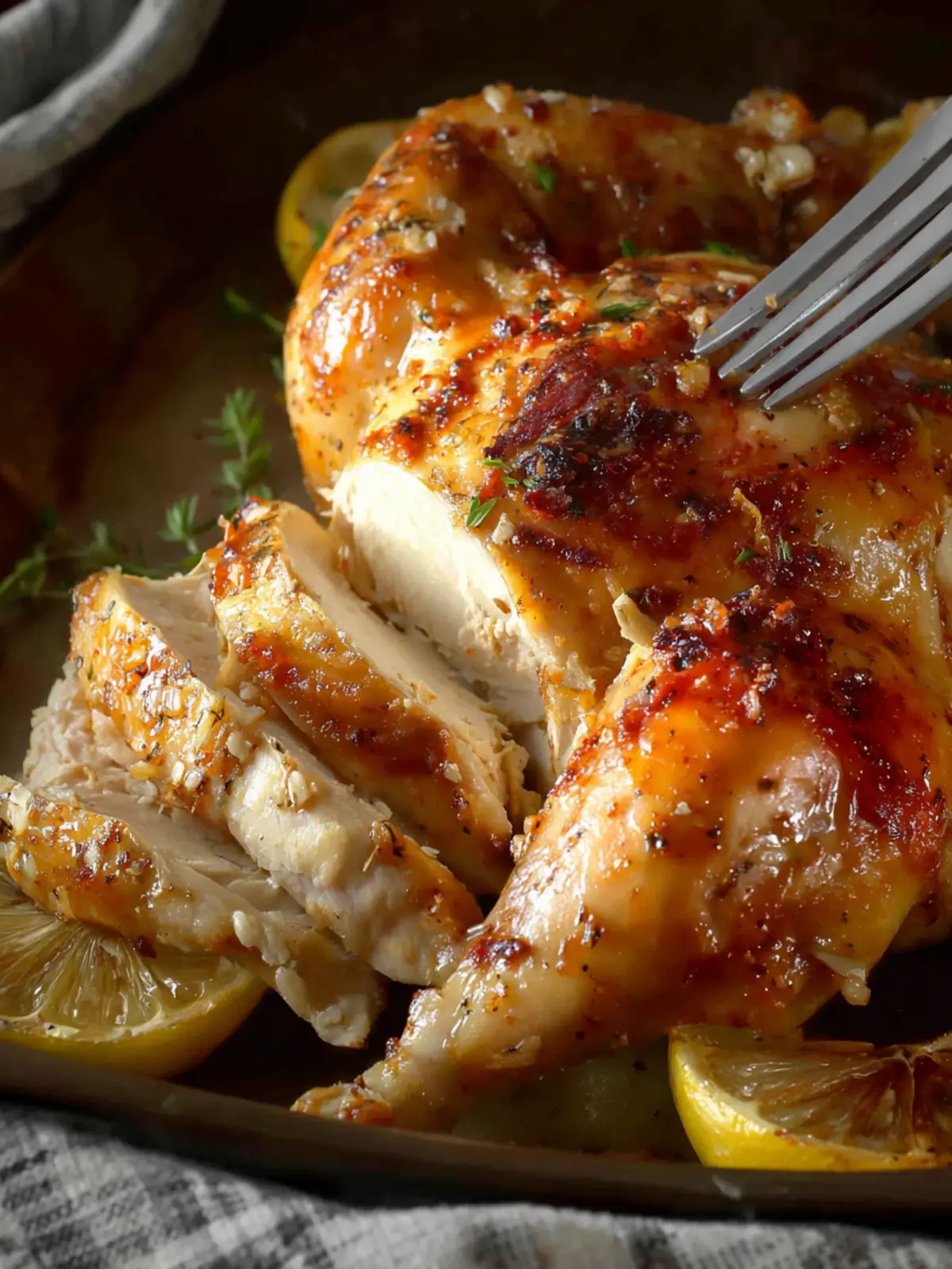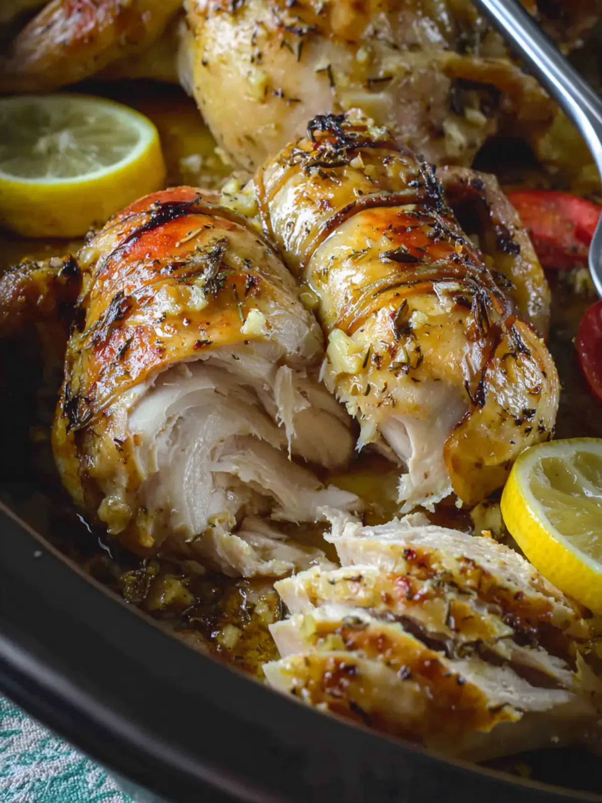 The most reliable way to check if your Slow Cooker Whole Garlic Butter Chicken is ready is to use a meat thermometer. The internal temperature should hit 165°F at the thickest part of the thigh without touching the bone. If you don’t have a thermometer, you can also ensure it’s done by checking that the juices run clear when you pierce the thigh.
