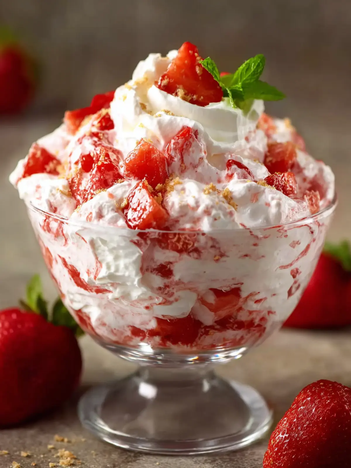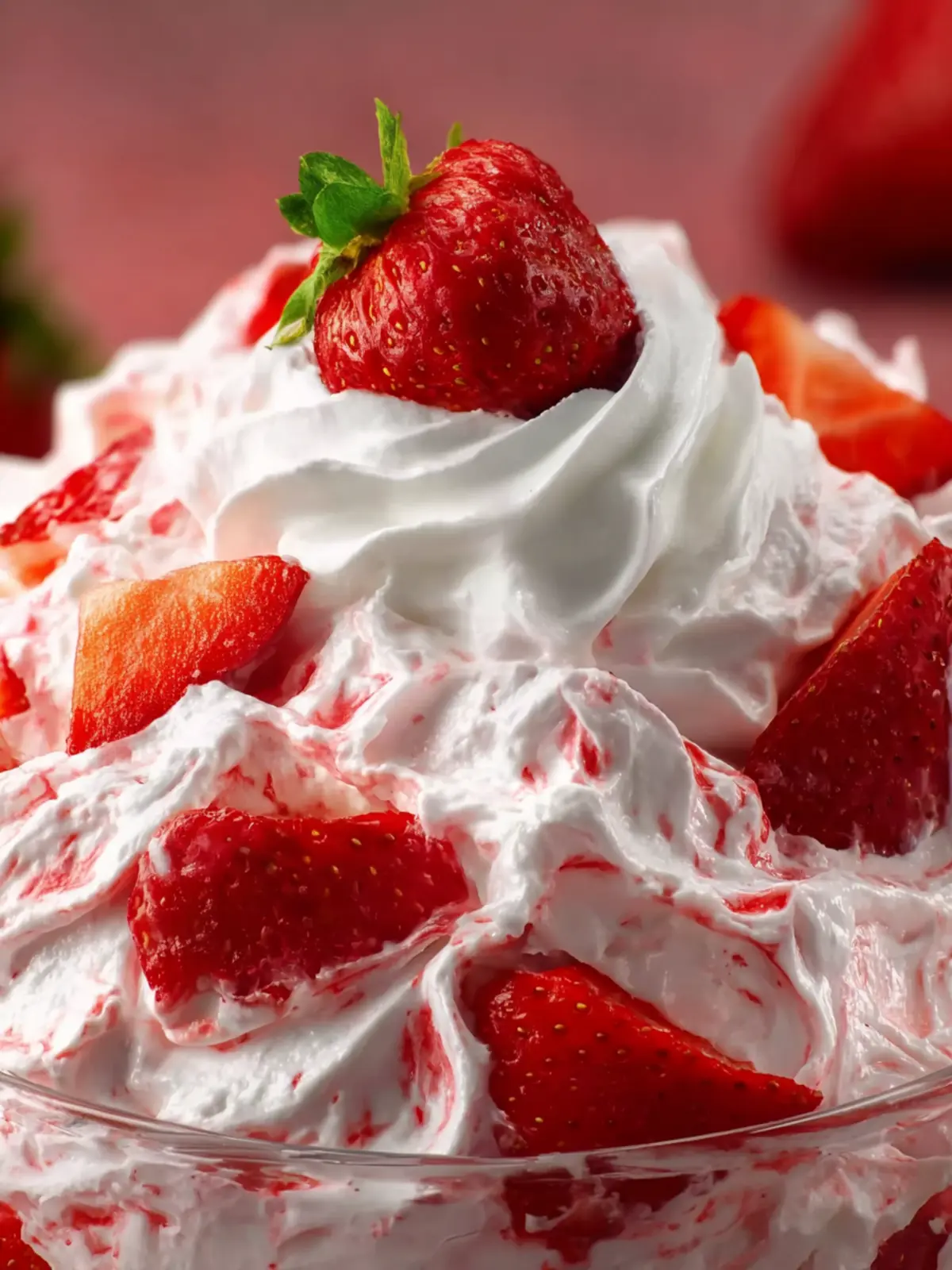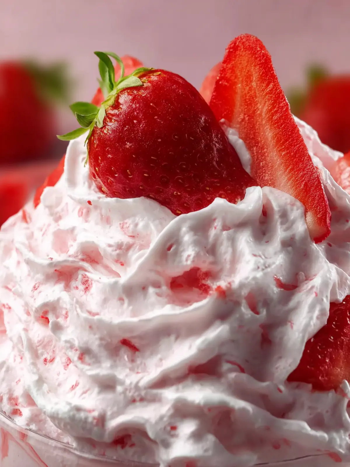 Fresh Strawberries: Garnish with sliced fresh strawberries or even a whole berry for that pop of color. It not only elevates the presentation but also brings out the fruity freshness of the fluff.